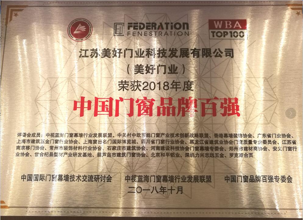 “中國門窗品牌百強(qiáng)”獲獎名單: