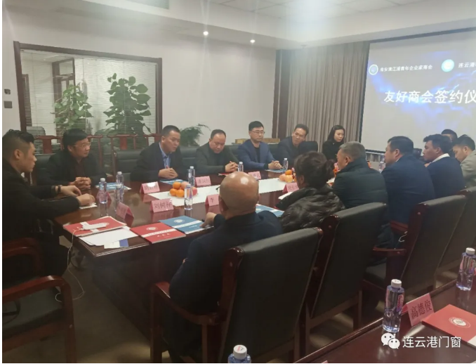 ? ? ? 11月28日,淮安清江浦青年企業(yè)家商會會長魏寶軍一行蒞臨連云港市門窗協(xié)會考察交流。期間連云港市門窗協(xié)會潘國柱會長帶隊陪同魏會長一行先后參觀考察了常務副會長單位“念佳門窗”和副會長單位“光明門業(yè)”兩家會員企業(yè),并就“推動跨地區(qū)合作,共享商協(xié)會資源,助力融合式發(fā)展“的主題開展座談。雙方簽約友好協(xié)議,正式締結(jié)友好商會。市工商聯(lián)張繼武副主席、市工商聯(lián)會員部王祥部長、市青年企業(yè)家聯(lián)合會費云健會長應邀出席了本次活動。