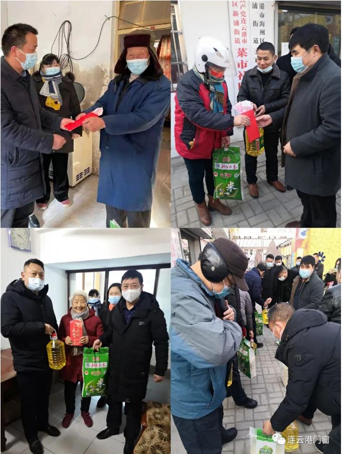 近日,連云港市門窗協(xié)會黨支部書記、會長潘國柱帶領(lǐng)常務(wù)副會長孫華才、陳和兒,副會長徐達、楊武、戴隆強、姚連斌、劉東磊,副書記蒯學(xué)通,監(jiān)事長高德俊,秘書長胡啟楷,執(zhí)行秘書長唐春和,副秘書長莊東生和常務(wù)理事耿華、劉祥強、劉云秋等愛心會員,先后走訪了海州區(qū)“新浦街道菜市社區(qū)”和“錦屏鎮(zhèn)李圩村”,為二十多戶困難群眾送年貨、送現(xiàn)金、送去新年的祝福和問候,讓困難群眾感受社會大家庭的溫暖。